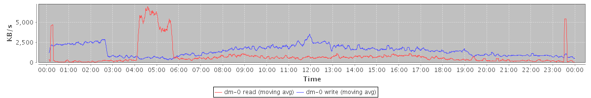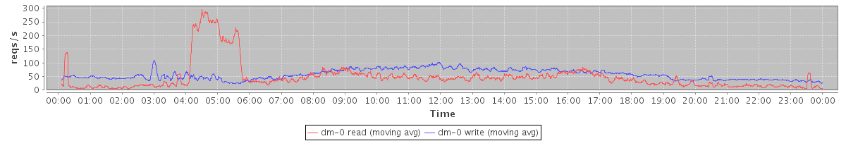 avg(dm-1 read) = 744.61 avg(dm-1 write) = 1075.04