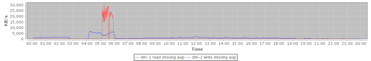 avg(dm-1 read) = 9.45 avg(dm-1 write) = 26.95