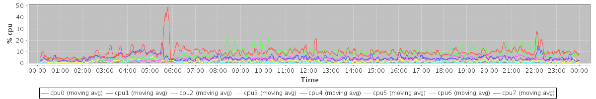 avg(cpu0) = 0.23 avg(cpu1) = 0.11 avg(cpu2) = 0.39 avg(cpu3) = 0.04 avg(cpu4) = 0.10 avg(cpu5) = 0.02 avg(cpu6) = 0.06 avg(cpu7) = 0.01