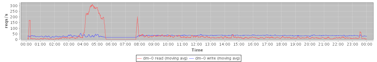 avg(dm-1 read) = 36.77 avg(dm-1 write) = 447.08