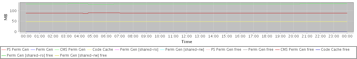 avg(PS Perm Gen) = 0.00 avg(Perm Gen) = 0.00 avg(CMS Perm Gen) = 131.72 avg(Code Cache) = 47.46 avg(Perm Gen [shared-ro]) = 0.00 avg(Perm Gen [shared-rw]) = 0.00 avg(PS Perm Gen free) = 0.00 avg(Perm Gen free) = 0.00 avg(CMS Perm Gen free) = 88.38 avg(Code Cache free) = 0.42 avg(Perm Gen [shared-ro] free) = 0.00 avg(Perm Gen [shared-rw] free) = 0.00