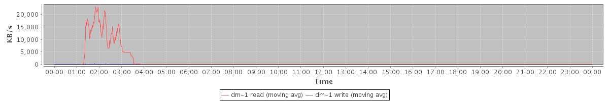 avg(dm-1 read) = 16.30 avg(dm-1 write) = 0.14