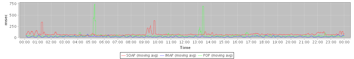 Host zm07.stanford.edu: Mailboxd: Response Time by Client Protocol