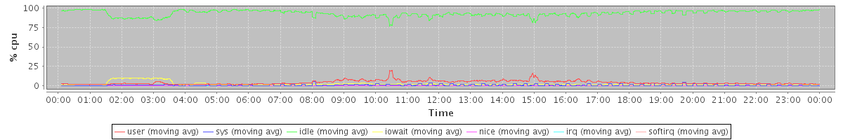 avg(user) = 4.01 avg(sys) = 0.72 avg(idle) = 93.36 avg(iowait) = 1.76 avg(nice) = 0.10 avg(irq) = 0.00 avg(softirq) = 0.06