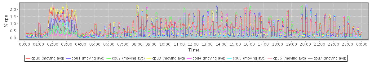 avg(cpu0) = 0.09 avg(cpu1) = 0.16 avg(cpu2) = 0.02 avg(cpu3) = 0.09 avg(cpu4) = 0.02 avg(cpu5) = 0.03 avg(cpu6) = 0.02 avg(cpu7) = 0.02
