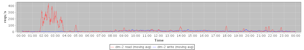 avg(dm-2 read) = 526.72 avg(dm-2 write) = 275.11