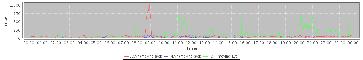 Host zm09.stanford.edu: Mailboxd: Response Time by Client Protocol