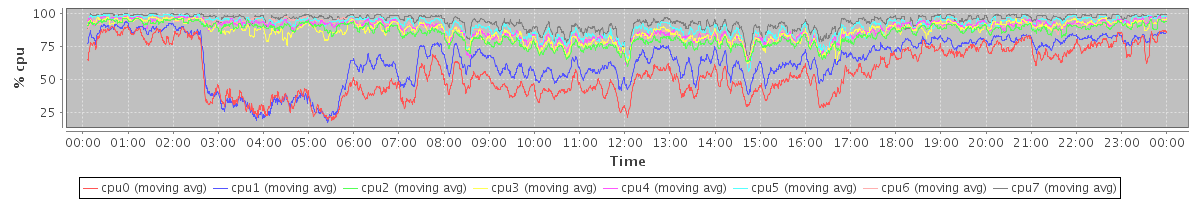 avg(cpu0) = 1.34 avg(cpu1) = 1.51 avg(cpu2) = 1.04 avg(cpu3) = 0.96 avg(cpu4) = 0.90 avg(cpu5) = 0.78 avg(cpu6) = 0.87 avg(cpu7) = 0.62