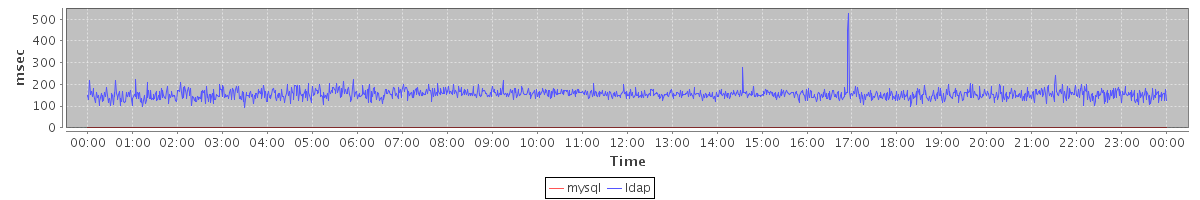 avg(mysql) = 0.22 avg(ldap) = 155.00