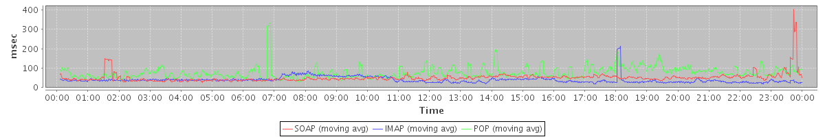 avg(IMAP) = 77.30 avg(IMAP SSL) = 570.81 avg(POP) = 0.01 avg(POP SSL) = 1.05