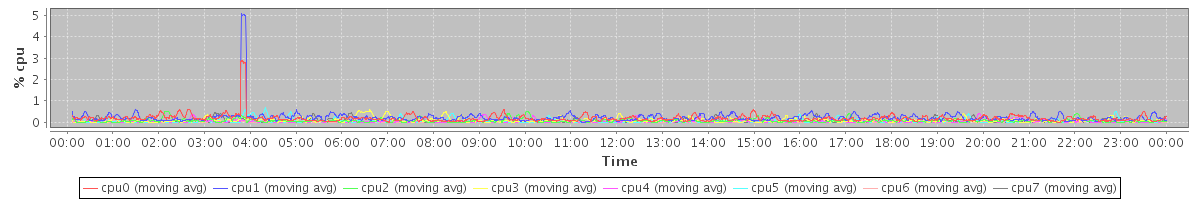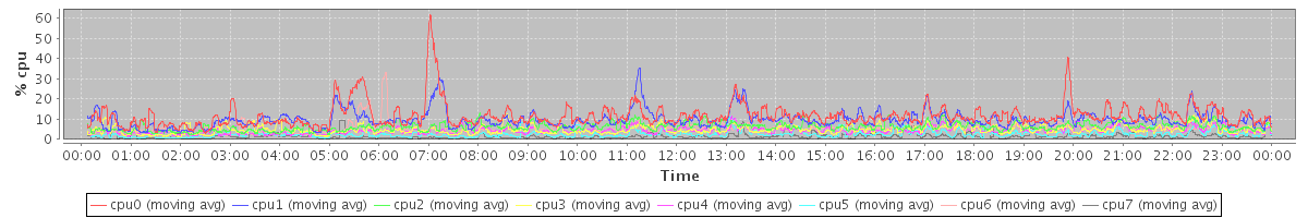 avg(cpu0) = 0.19 avg(cpu1) = 0.23 avg(cpu2) = 0.08 avg(cpu3) = 0.10 avg(cpu4) = 0.05 avg(cpu5) = 0.07 avg(cpu6) = 0.03 avg(cpu7) = 0.04