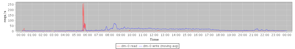 avg(dm-0 read) = 0.91 avg(dm-0 write) = 14.14