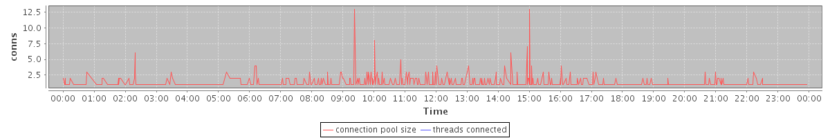 avg(connection pool size) = 0.54 avg(threads connected) = 0.00