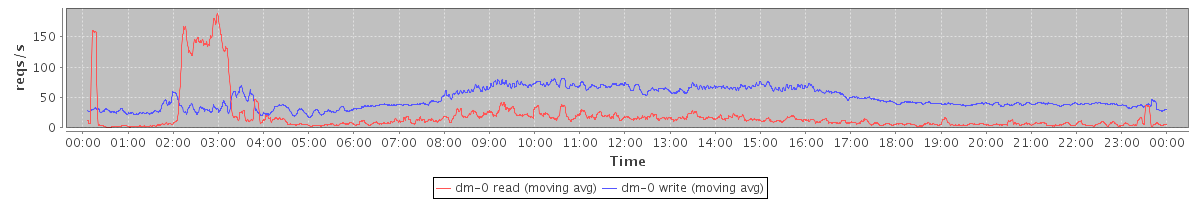 avg(dm-0 read) = 18.70 avg(dm-0 write) = 47.55