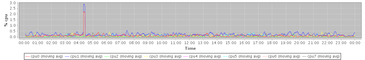 avg(cpu0) = 0.08 avg(cpu1) = 0.19 avg(cpu2) = 0.03 avg(cpu3) = 0.06 avg(cpu4) = 0.03 avg(cpu5) = 0.04 avg(cpu6) = 0.03 avg(cpu7) = 0.03