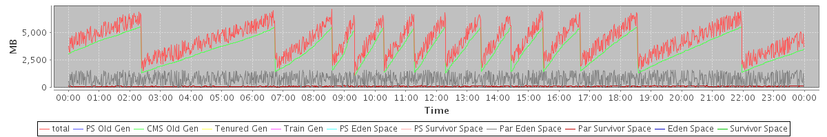 avg(total) = 4343.31 avg(PS Old Gen) = 0.00 avg(CMS Old Gen) = 3435.12 avg(Tenured Gen) = 0.00 avg(Train Gen) = 0.00 avg(PS Eden Space) = 0.00 avg(PS Survivor Space) = 0.00 avg(Par Eden Space) = 798.65 avg(Par Survivor Space) = 109.54 avg(Eden Space) = 0.00 avg(Survivor Space) = 0.00