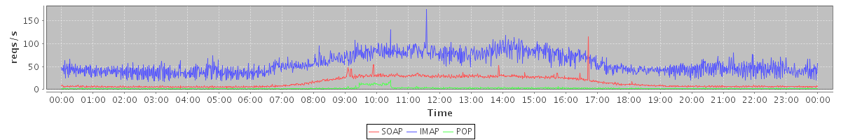 Host zm03.stanford.edu: Mailboxd: Request Rate by Client Protocol