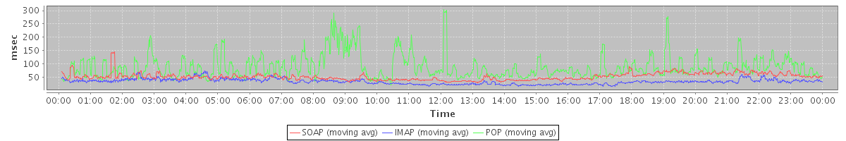 Host zm03.stanford.edu: Mailboxd: Response Time by Client Protocol