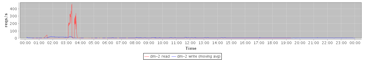 avg(dm-2 read) = 409.50 avg(dm-2 write) = 386.06