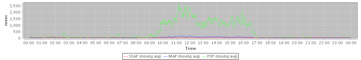 Host zm03.stanford.edu: Mailboxd: Response Time by Client Protocol