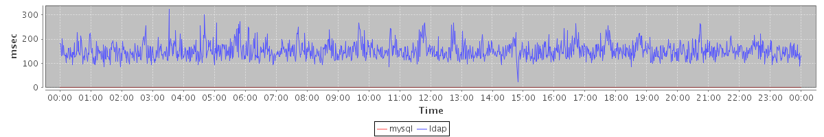 avg(mysql) = 0.19 avg(ldap) = 151.81