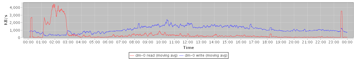 avg(dm-1 read) = 15.86 avg(dm-1 write) = 0.92
