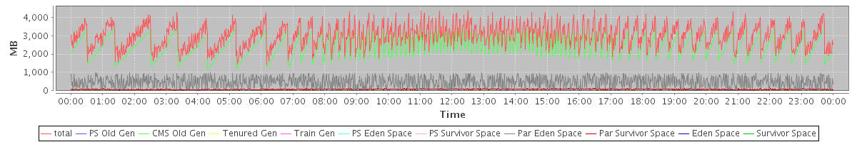 avg(total) = 2992.55 avg(PS Old Gen) = 0.00 avg(CMS Old Gen) = 2435.58 avg(Tenured Gen) = 0.00 avg(Train Gen) = 0.00 avg(PS Eden Space) = 0.00 avg(PS Survivor Space) = 0.00 avg(Par Eden Space) = 482.52 avg(Par Survivor Space) = 74.45 avg(Eden Space) = 0.00 avg(Survivor Space) = 0.00