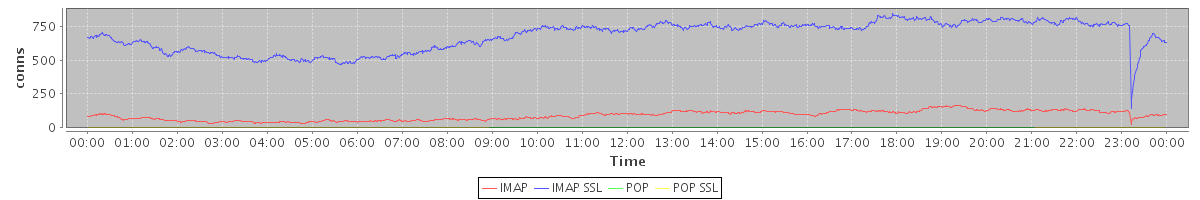 avg(IMAP) = 90.93 avg(IMAP SSL) = 677.71 avg(POP) = 0.01 avg(POP SSL) = 0.72