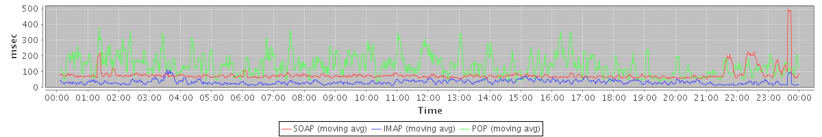Host zm01.stanford.edu: Mailboxd: Response Time by Client Protocol