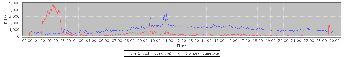 avg(dm-1 read) = 434.86 avg(dm-1 write) = 1048.81