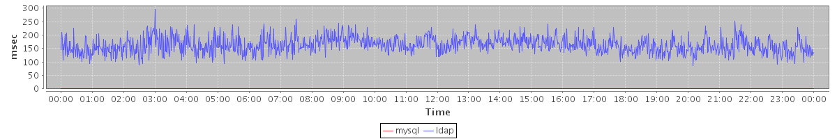 avg(mysql) = 0.19 avg(ldap) = 162.89