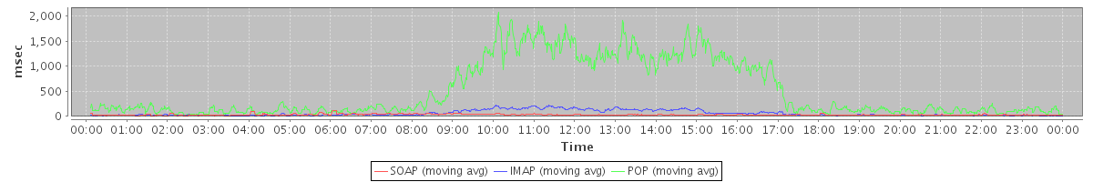 Host zm04.stanford.edu: Mailboxd: Response Time by Client Protocol