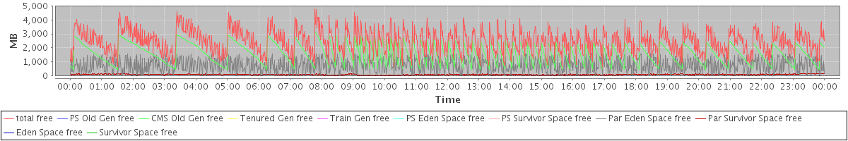 avg(total free) = 2486.67 avg(PS Old Gen free) = 0.00 avg(CMS Old Gen free) = 1593.17 avg(Tenured Gen free) = 0.00 avg(Train Gen free) = 0.00 avg(PS Eden Space free) = 0.00 avg(PS Survivor Space free) = 0.00 avg(Par Eden Space free) = 790.09 avg(Par Survivor Space free) = 103.42 avg(Eden Space free) = 0.00 avg(Survivor Space free) = 0.00