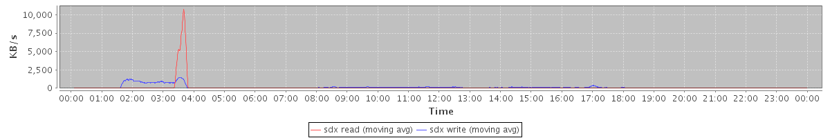 avg(sdx read) = 0.99 avg(sdx write) = 3.87