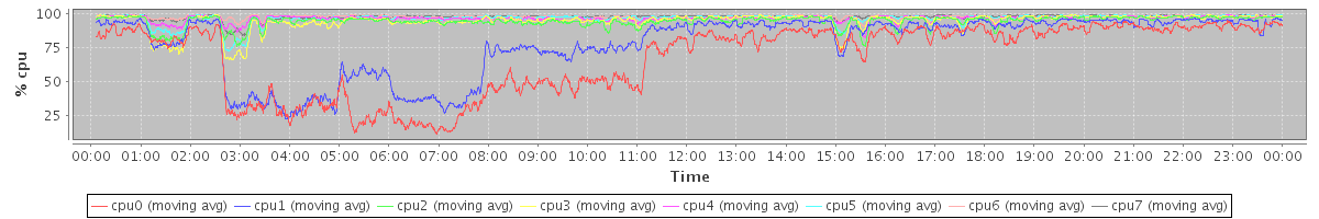 avg(cpu0) = 1.09 avg(cpu1) = 1.11 avg(cpu2) = 0.78 avg(cpu3) = 0.90 avg(cpu4) = 0.42 avg(cpu5) = 0.55 avg(cpu6) = 0.28 avg(cpu7) = 0.36