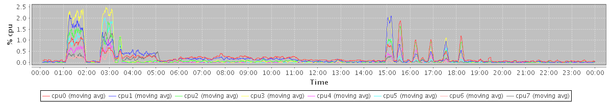 avg(cpu0) = 0.19 avg(cpu1) = 0.22 avg(cpu2) = 0.06 avg(cpu3) = 0.06 avg(cpu4) = 0.04 avg(cpu5) = 0.03 avg(cpu6) = 0.02 avg(cpu7) = 0.02