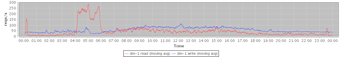 avg(dm-1 read) = 845.75 avg(dm-1 write) = 1283.46