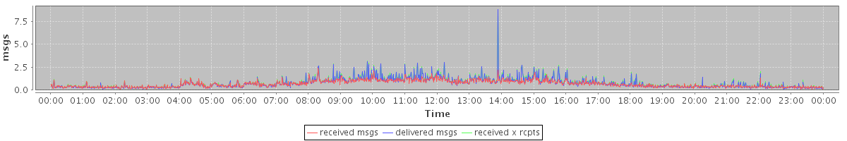 avg(received msgs) = 0.67 avg(delivered msgs) = 0.74 avg(received x rcpts) = 0.80
