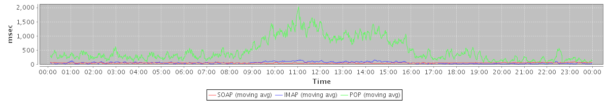 avg(IMAP) = 110.40 avg(IMAP SSL) = 1060.75 avg(POP) = 0.20 avg(POP SSL) = 4.94