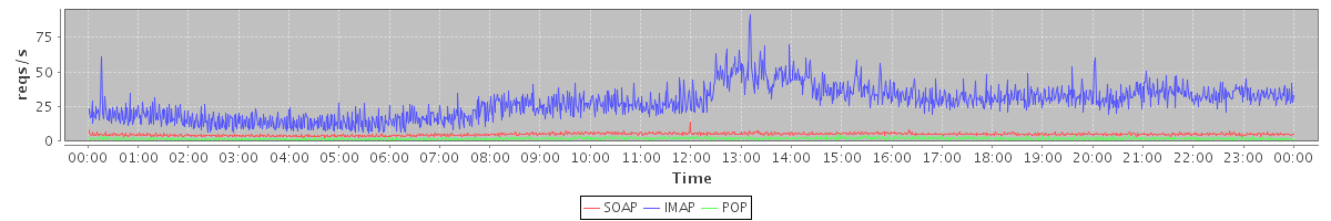 Host zm02.stanford.edu: Mailboxd: Request Rate by Client Protocol
