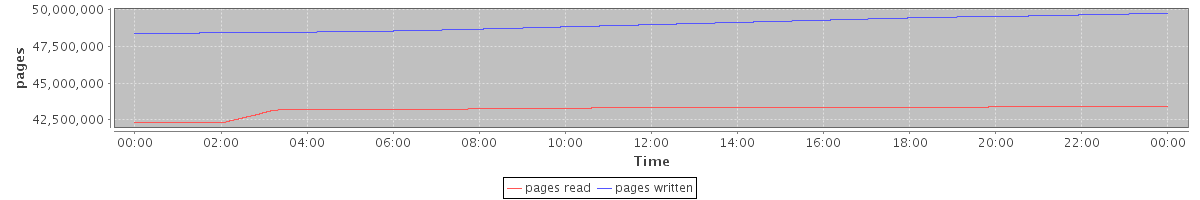 avg(pages read) = 43198965.47 avg(pages written) = 49005777.03
