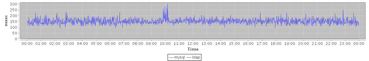 avg(mysql) = 0.16 avg(ldap) = 152.88
