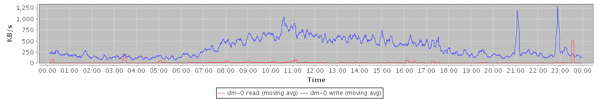 avg(dm-1 read) = 0.01 avg(dm-1 write) = 9.62