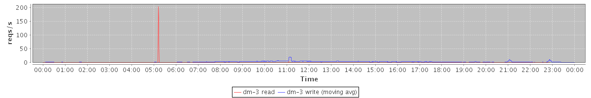 avg(dm-3 read) = 0.15 avg(dm-3 write) = 2.67