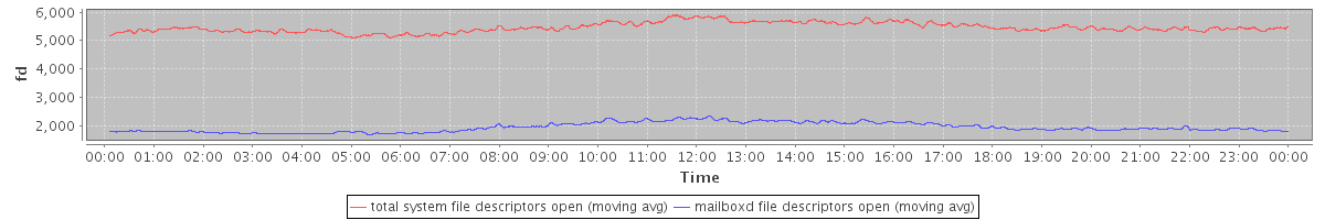 avg(total system file descriptors open) = 5461.77 avg(mailboxd file descriptors open) = 1940.21