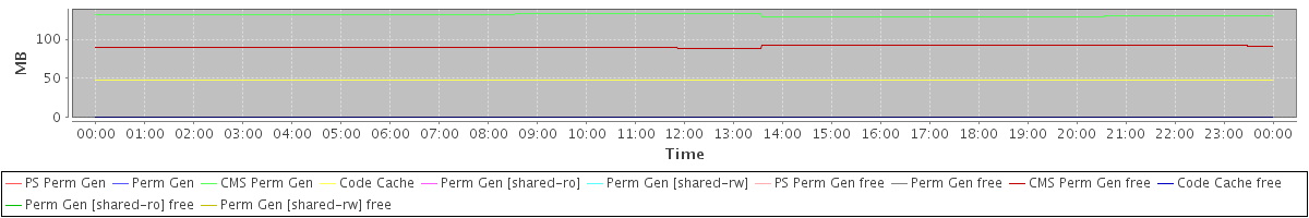 avg(PS Perm Gen) = 0.00 avg(Perm Gen) = 0.00 avg(CMS Perm Gen) = 130.74 avg(Code Cache) = 47.47 avg(Perm Gen [shared-ro]) = 0.00 avg(Perm Gen [shared-rw]) = 0.00 avg(PS Perm Gen free) = 0.00 avg(Perm Gen free) = 0.00 avg(CMS Perm Gen free) = 90.55 avg(Code Cache free) = 0.40 avg(Perm Gen [shared-ro] free) = 0.00 avg(Perm Gen [shared-rw] free) = 0.00