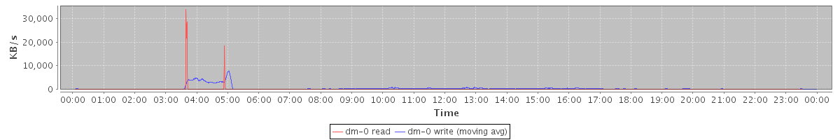 avg(dm-0 read) = 0.72 avg(dm-0 write) = 13.83