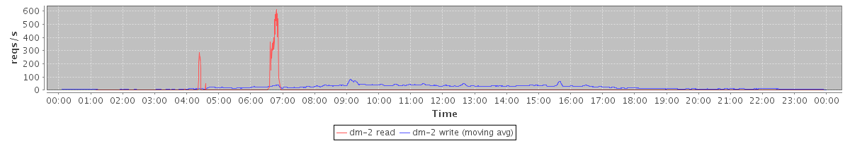 avg(dm-1 read) = 611.68 avg(dm-1 write) = 358.36