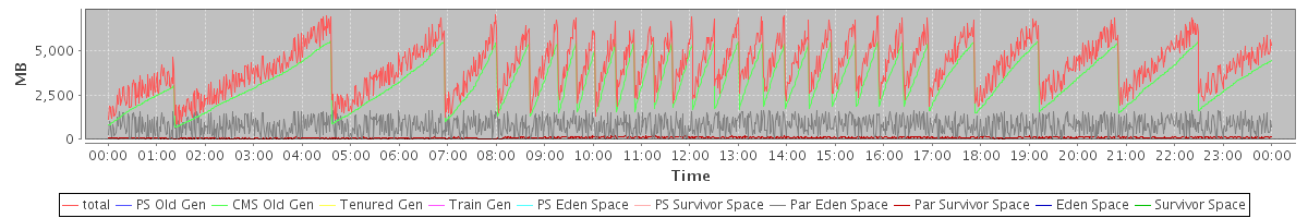 avg(total) = 4147.81 avg(PS Old Gen) = 0.00 avg(CMS Old Gen) = 3257.88 avg(Tenured Gen) = 0.00 avg(Train Gen) = 0.00 avg(PS Eden Space) = 0.00 avg(PS Survivor Space) = 0.00 avg(Par Eden Space) = 798.81 avg(Par Survivor Space) = 91.12 avg(Eden Space) = 0.00 avg(Survivor Space) = 0.00