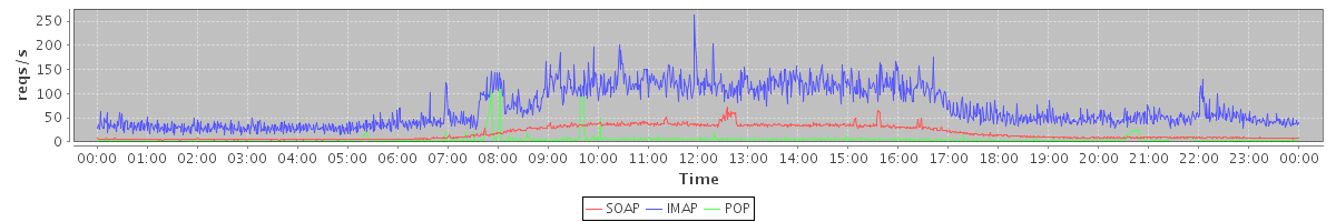 avg(IMAP) = 103.85 avg(IMAP SSL) = 943.55 avg(POP) = 0.16 avg(POP SSL) = 4.92 avg(SOAP sessions) = 655.24